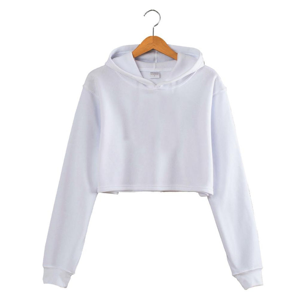 Wholesale White Cotton Crop Top Hoodie for Women Custom LOGO Printed on Front Winter Season Item with Customized Logo