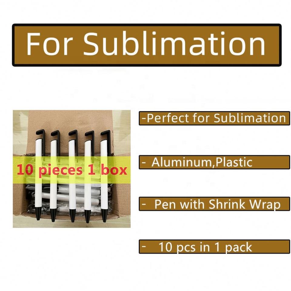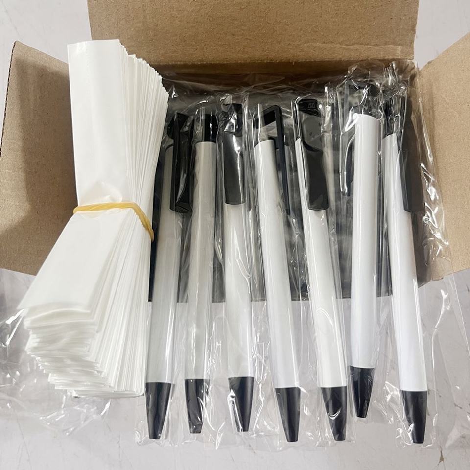 Wholesale White Metal 0.7mm Sublimation Blank Erasable Ballpoint Pens with Shrink Wrap for Personalized Printing and Black Ink