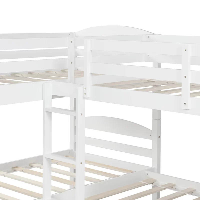 White Wooden Twin over Twin L-Shaped 4 Tier Bunk Bed with Trundle