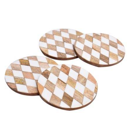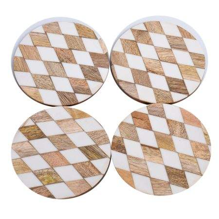 Wholesale White and Brown Wooden Coasters Set of 4 Table Coasters for Drinks Kitchen Accessory Use for Home Hotel MCR-035/57223