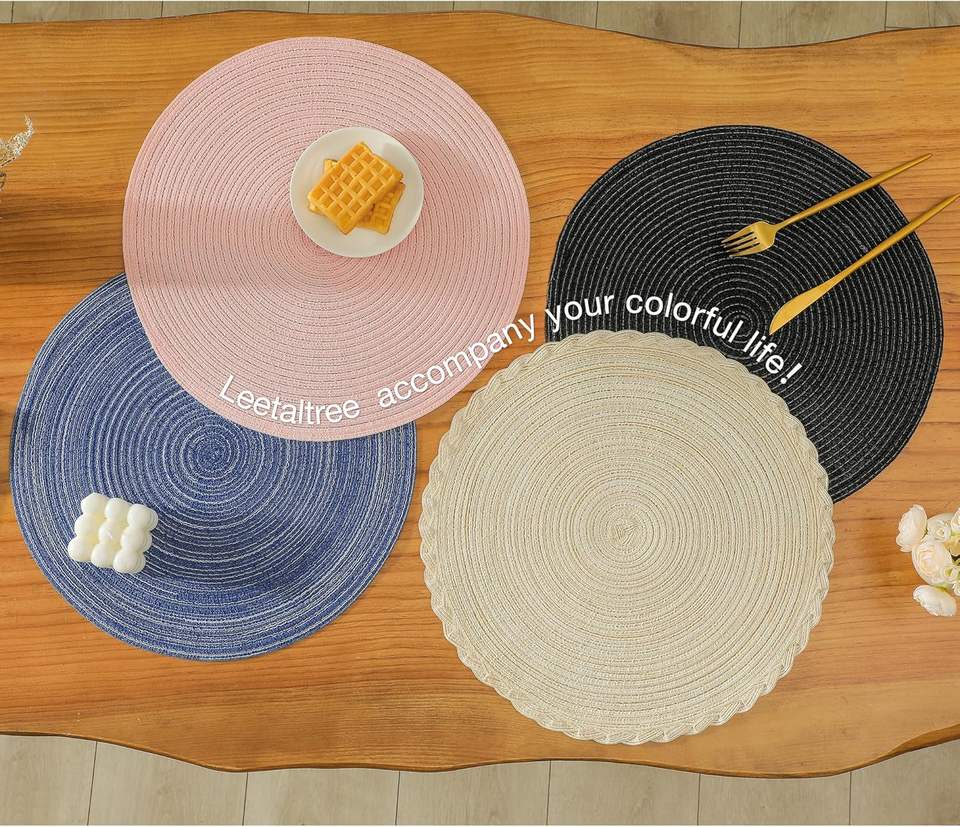 Wholesale Wholesale Luxury Natural Christmas Wedding Kitchen Table 15 Inch Mat Washable Round Woven Cotton Braided Placemat Set