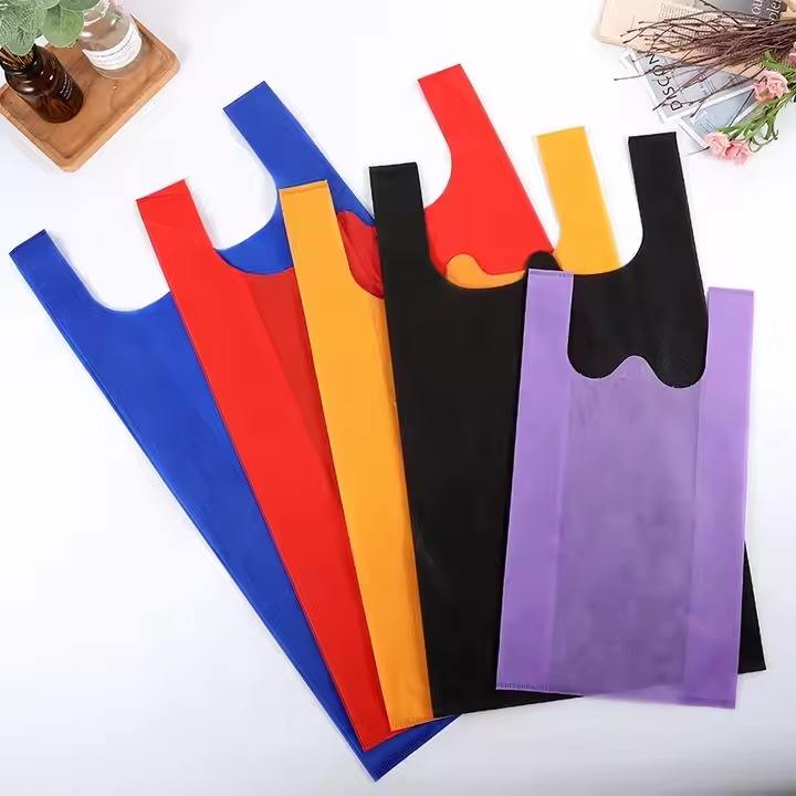 Wholesale Wholesale Portable Non-woven Fabrics Shopping Bags Reusable Eco-Friendly Non Woven T-shirt Bag Custom Logo Non-woven W Cut Bag