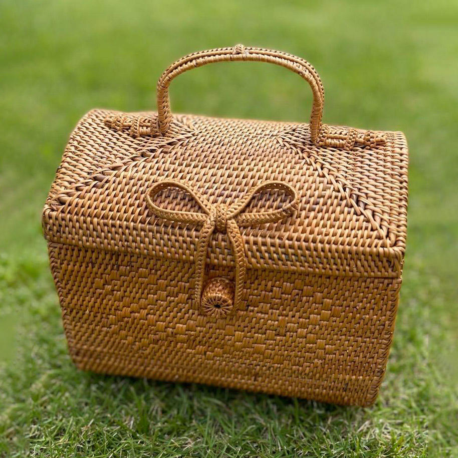 Wholesale Wicker Picnic Basket With Lid Handmade Natural Rattan Baskets for Camping Occasion