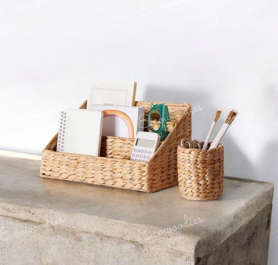 Natural Bamboo Rattan Magazine Holder With Pen Stand