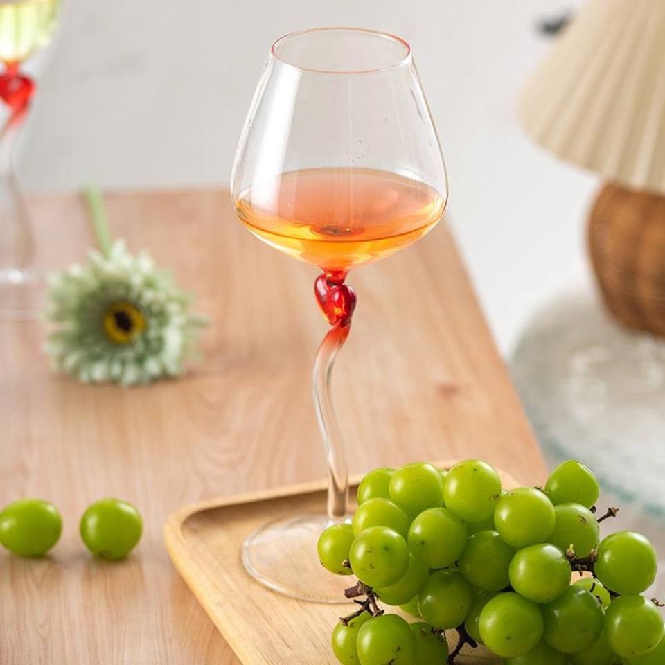 Wholesale Wine Glasses With Red Heart Design Luxury Modern Unique Party Wedding Drinkware Glass Goblet Drinking Cup Set Of 2 Pcs