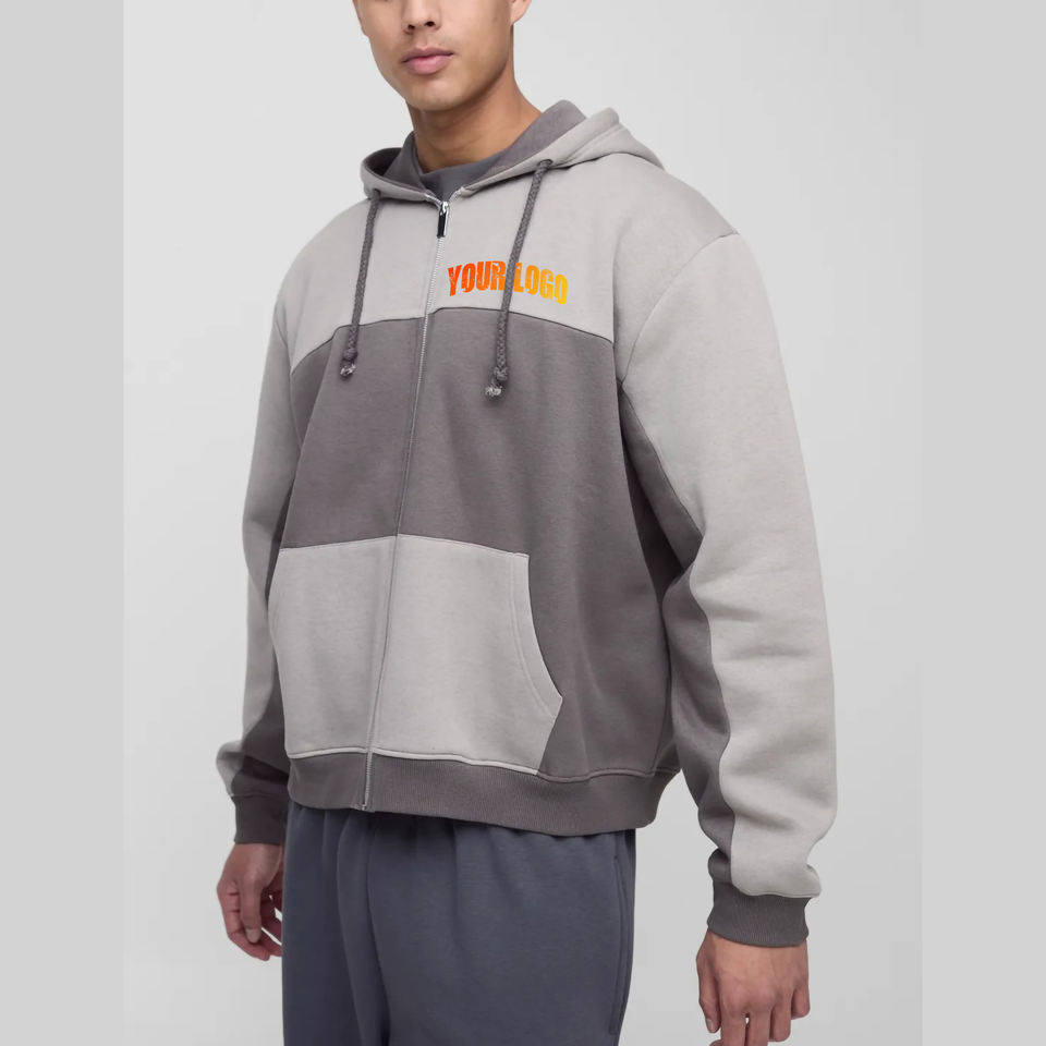 Wholesale Winter Casual Wear Custom Embroidered Oversized 100% Cotton Colour Block Zipper Hoodies Men's Plus Size Hip Hop High