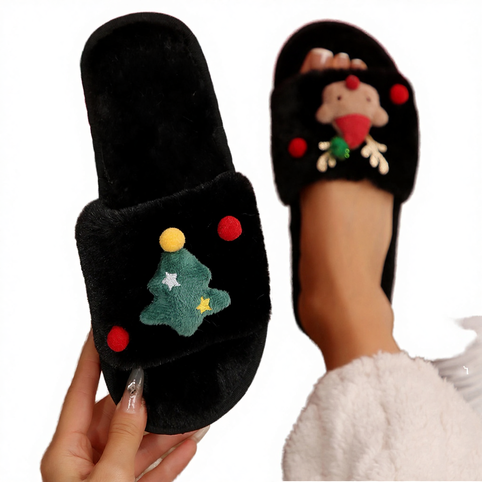 Wholesale Winter Christmas Breathable plush slippers high quality winter Warm Fluffy Home Slippers for women