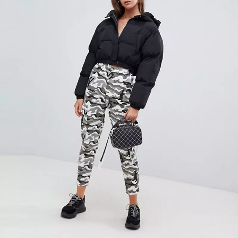 Wholesale Winter Custom Puff Plus Size Bubble Breathable Bomber Puffer Jacket Women Crop Top Ladies Big Collar Short Jacket