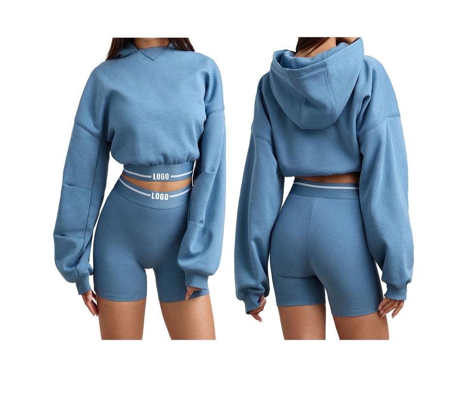 Wholesale Winter Trendy 2 Piece Set Long Sleeve Oversized Crop Hoodies Shorts 100% Cotton Customize Logo Quick Dry Breathable