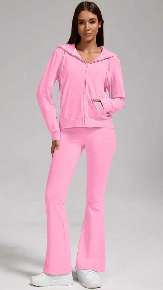 Wholesale Winter Vintage Retro Y2K Athleisure Sportswear Women's Flared Two-Piece Hoodie Pants Set Custom Logo Solid Pattern