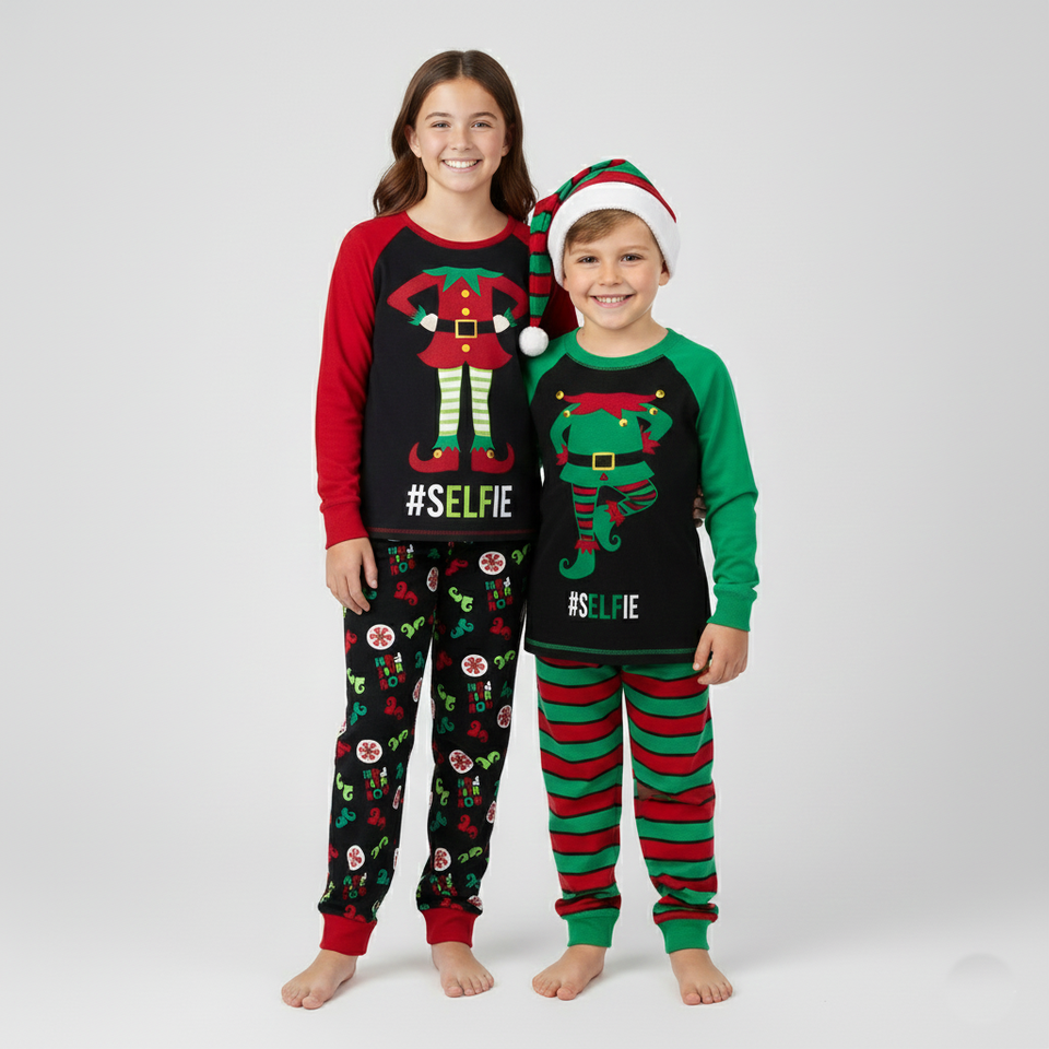 Wholesale Winter Xmas Thermal Fleece Sleepwear Elf-Themed Boys Pajama Set Sublimation Print Made in Cambodia manufacture