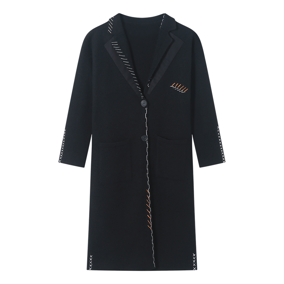 Wholesale Women Autumn Winter Long Coat Lapel Solid Color Button Cardigan Ladies Elegant Woolen Coat