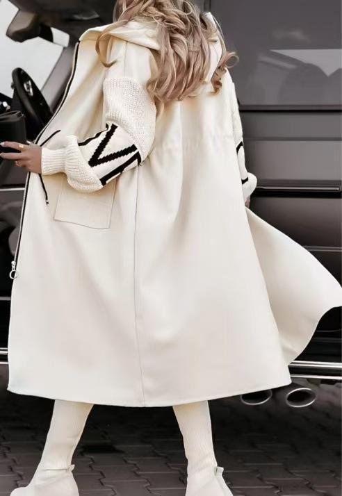 Wholesale Women Autumn and Winter Long Patchwork Hooded Coat Jacket Windbreaker With Zipper and Pocket