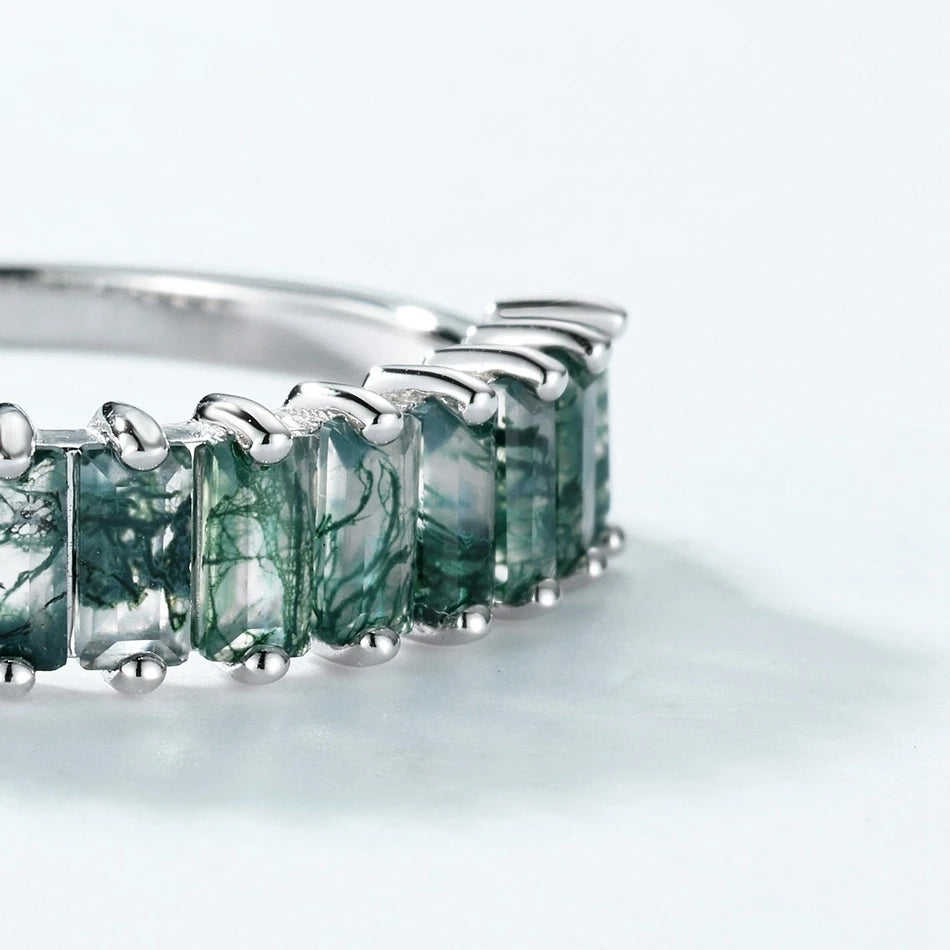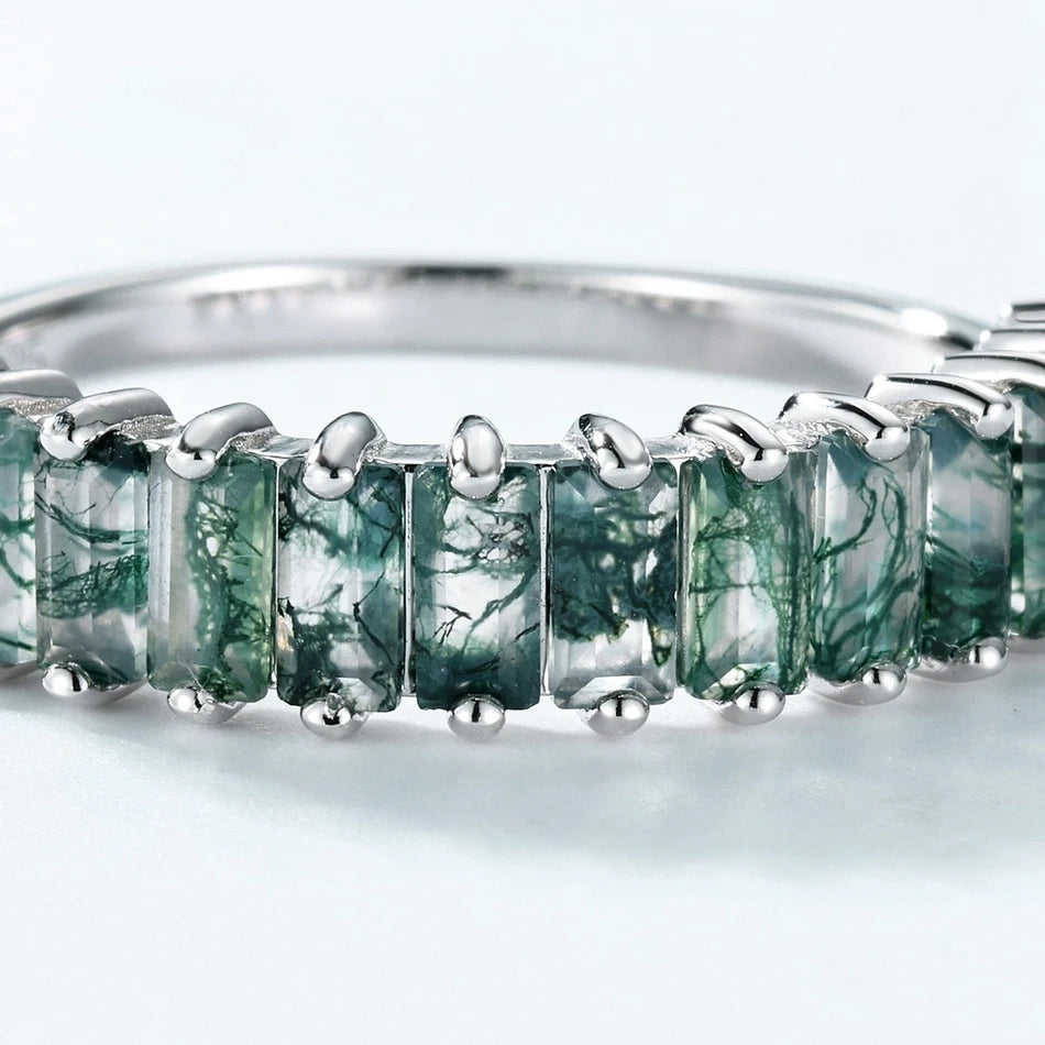 Wholesale Women Baguette Cut Green Moss Agate Jewelry Natural Dainty Sterling Silver And White Gold Moss Agate Engagement Ring