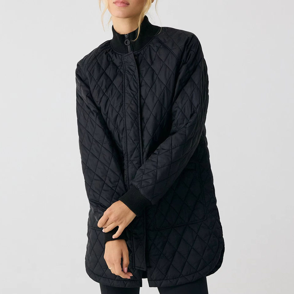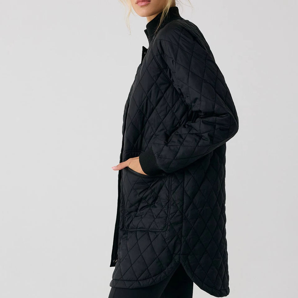 Wholesale Women Diamond Quilted Longline Jacket For Women Stylish High Ribbed Collar & Flap Pockets Casualwear With Custom Logo