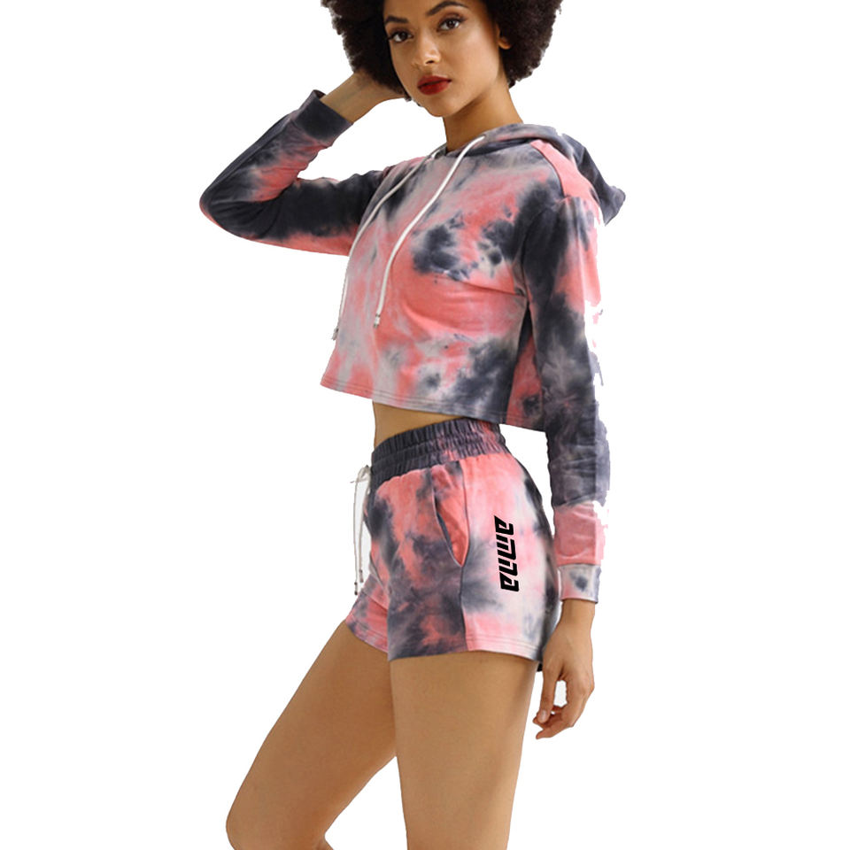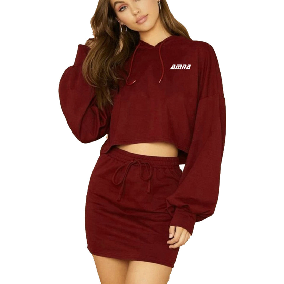 Wholesale Women Fashionable Crop Top Hoodies Sets / Fleece Hoodies Sets for Girls