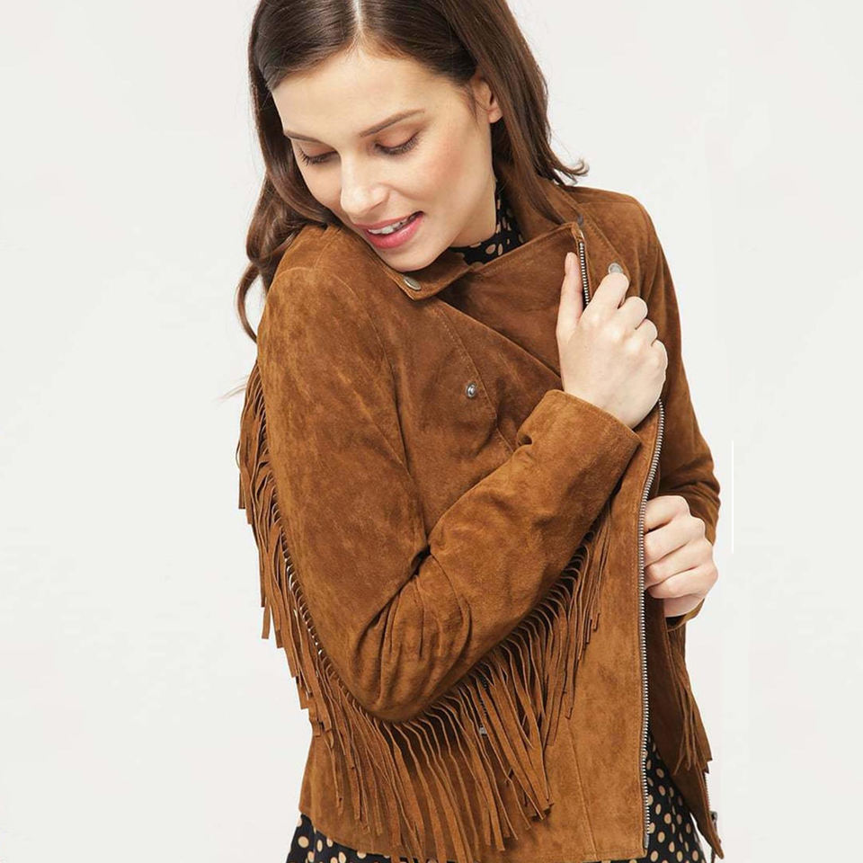 Wholesale Women Fringes Leather Jacket Genuine Leather Made Women Jacket Thick Western Style Leather Jacket for Women
