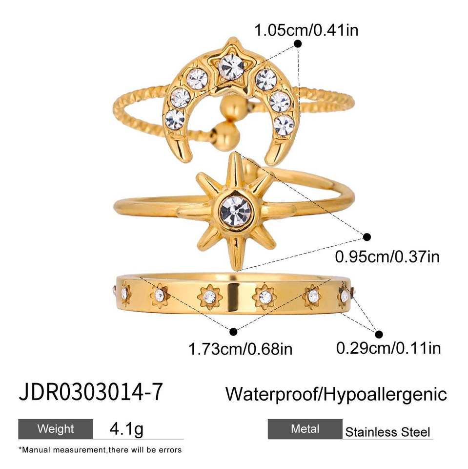 Wholesale Women Luxury Fashion Rings Fadeless Size 7 Moon Star Shaped 18K Stainless Steel Zircon Rings Set