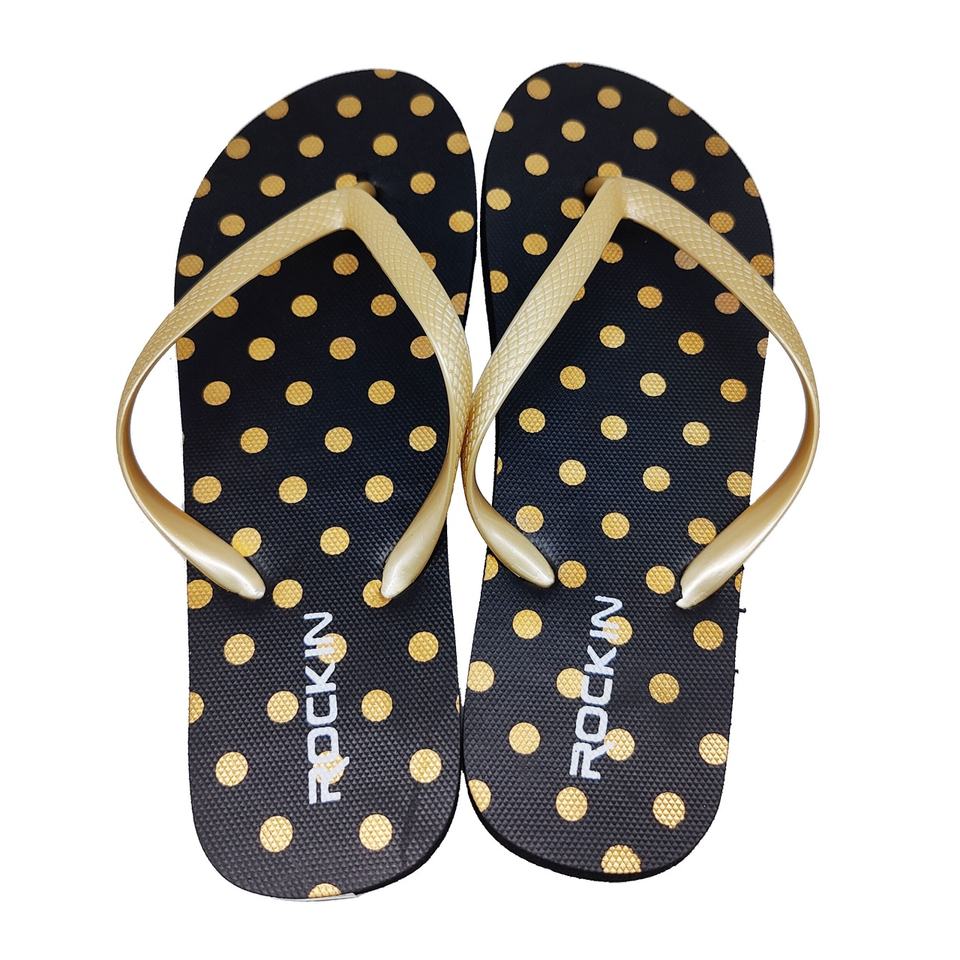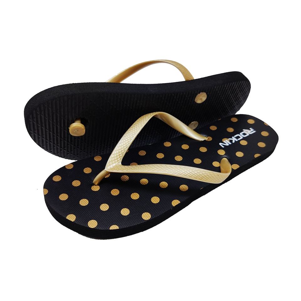 Wholesale Women Polka Dot Flip Flops Gold Strap Beach Sandals Custom Logo Printed PE Rubber Summer Slippers