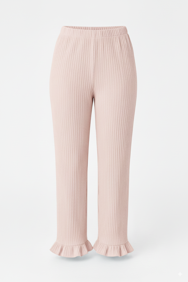 Model Number:RIBBED KNIT RUFFLE HEM PANTS