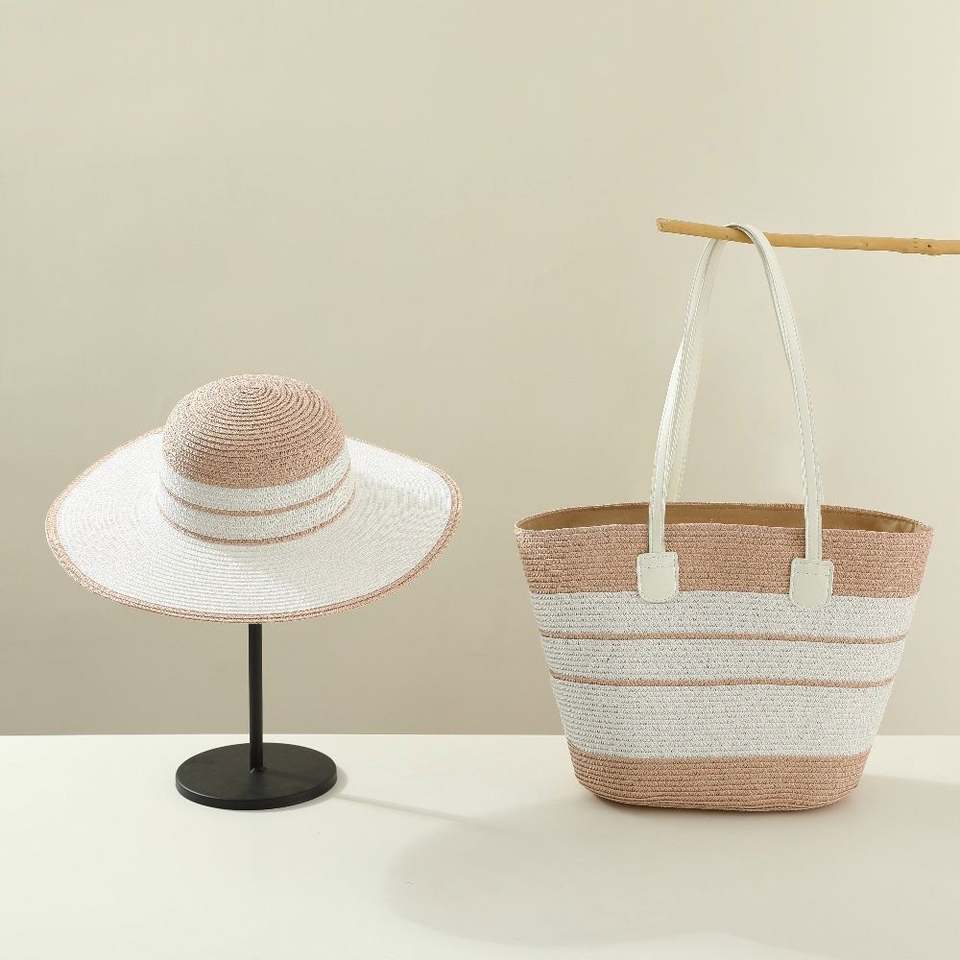 Wholesale Women Straw Hat and Shoulder Bag Set Beach Cap Wide Brim Summer Sun Hat and Tote Bag