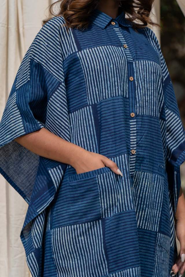 Wholesale Women Summer Collection Custom High Neck Button Down Printed Casual Kaftan