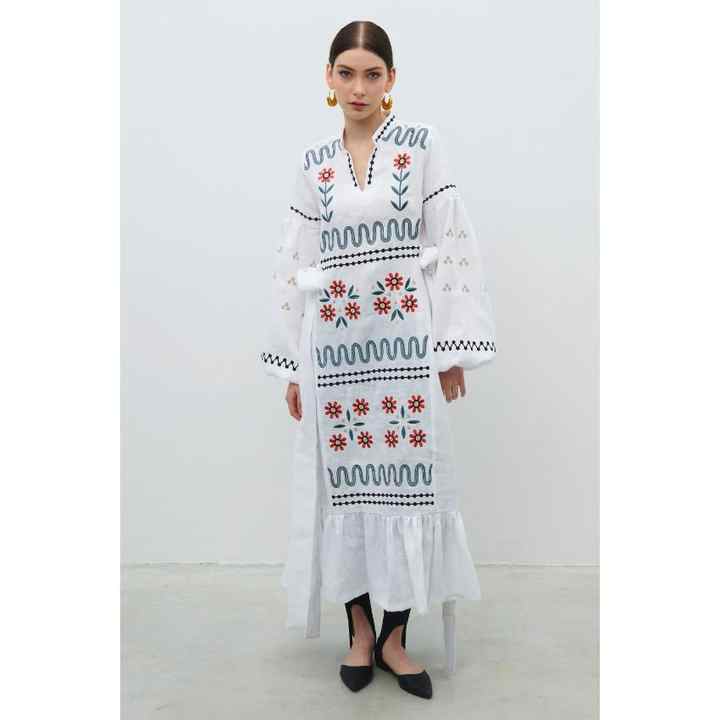 Wholesale Women White Embroidered Floor-Length Maxi Dress Ethnic Long Kurti Plaid/Solid Pattern Natural Washable Ruffle Hem