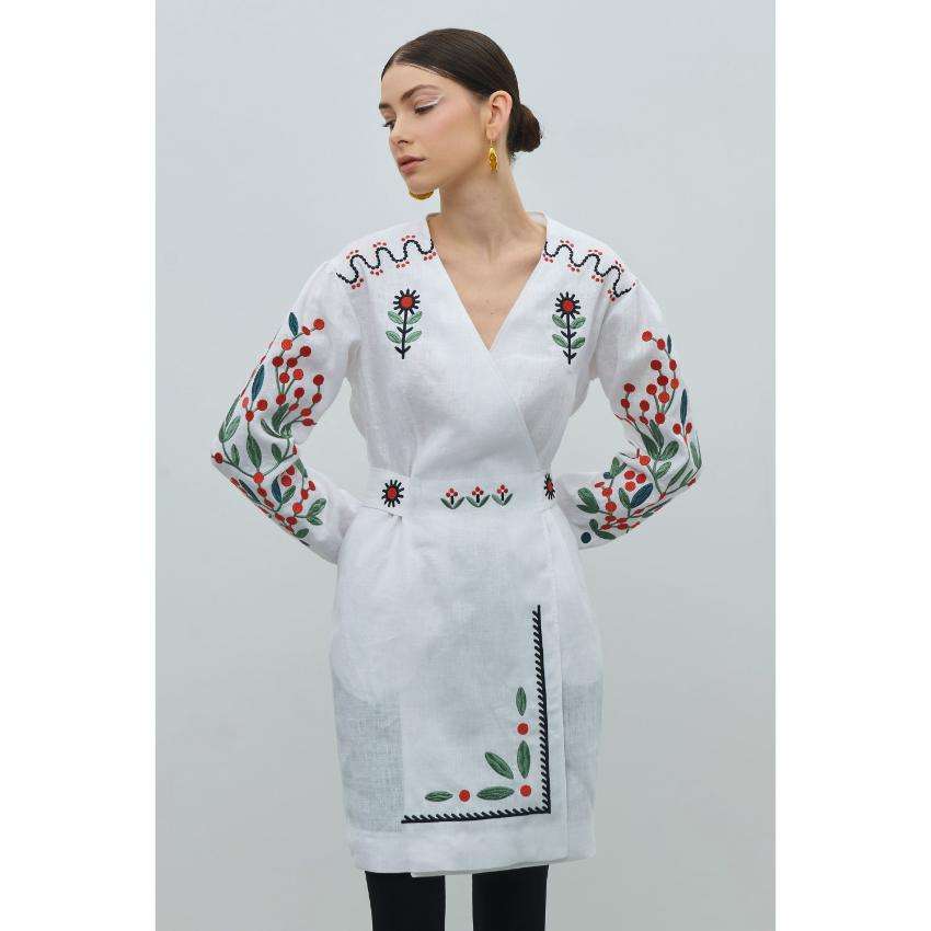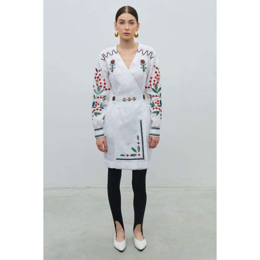 Wholesale Women White Embroidered Wrap Style Midi Kurti Dress Floral Ethnic Tunic with Long Sleeves Eco-Friendly Natural Waist