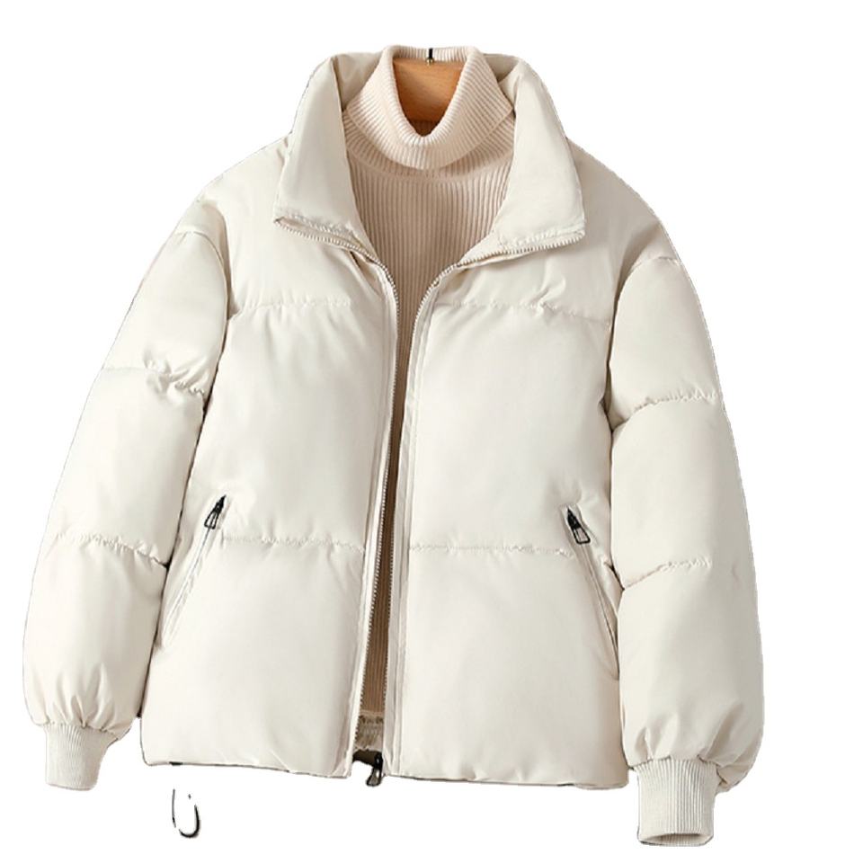 Wholesale Women Winter Breathable Knitted Cotton Filled Baggy Short Puffer Crop Jacket Long Sleeve Zip up