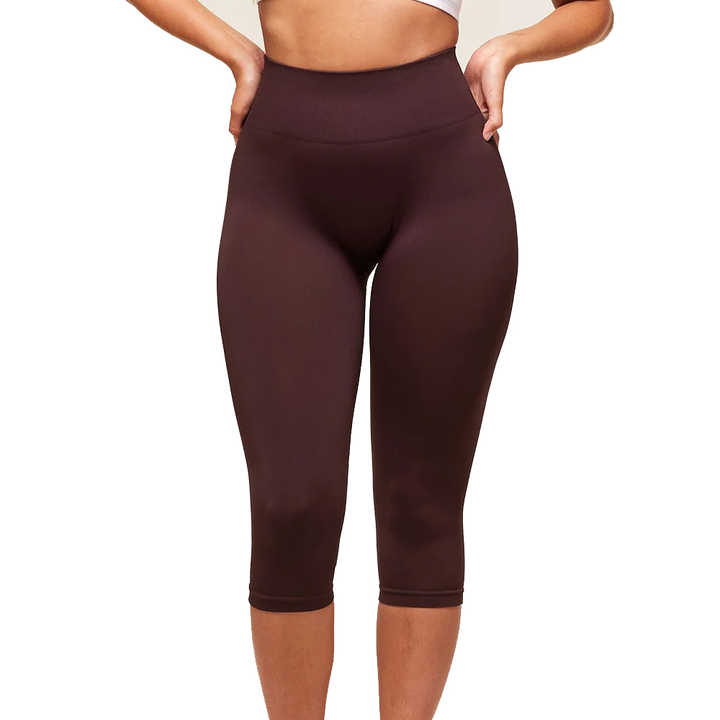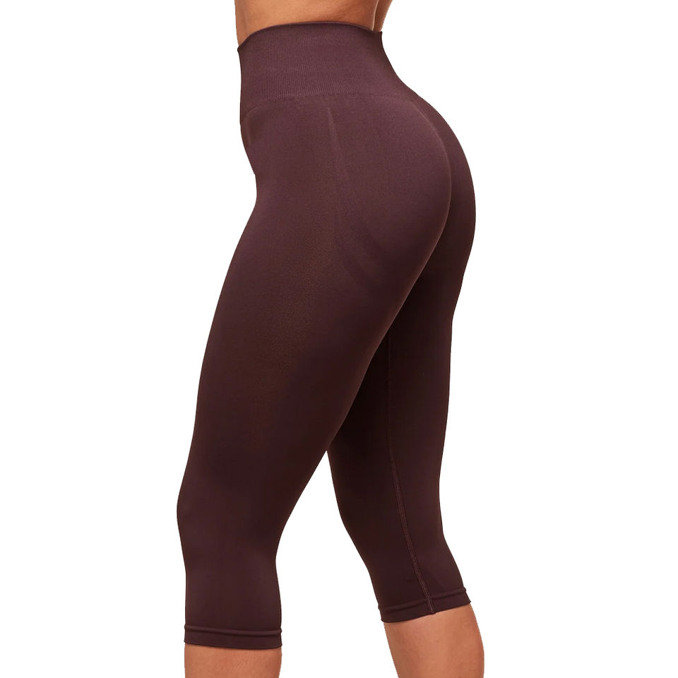 Wholesale Women's 3/4 Length Solid Wine Red Capris High Waist Quick Dry Workout Pants with Custom Logo for Gym Use OEM Service