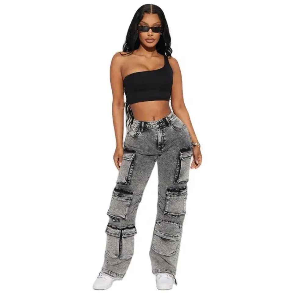 Wholesale Women's Breathable Mid Waist Straight Jeans Denim Pants Cute Belt Customized Color OEM Service