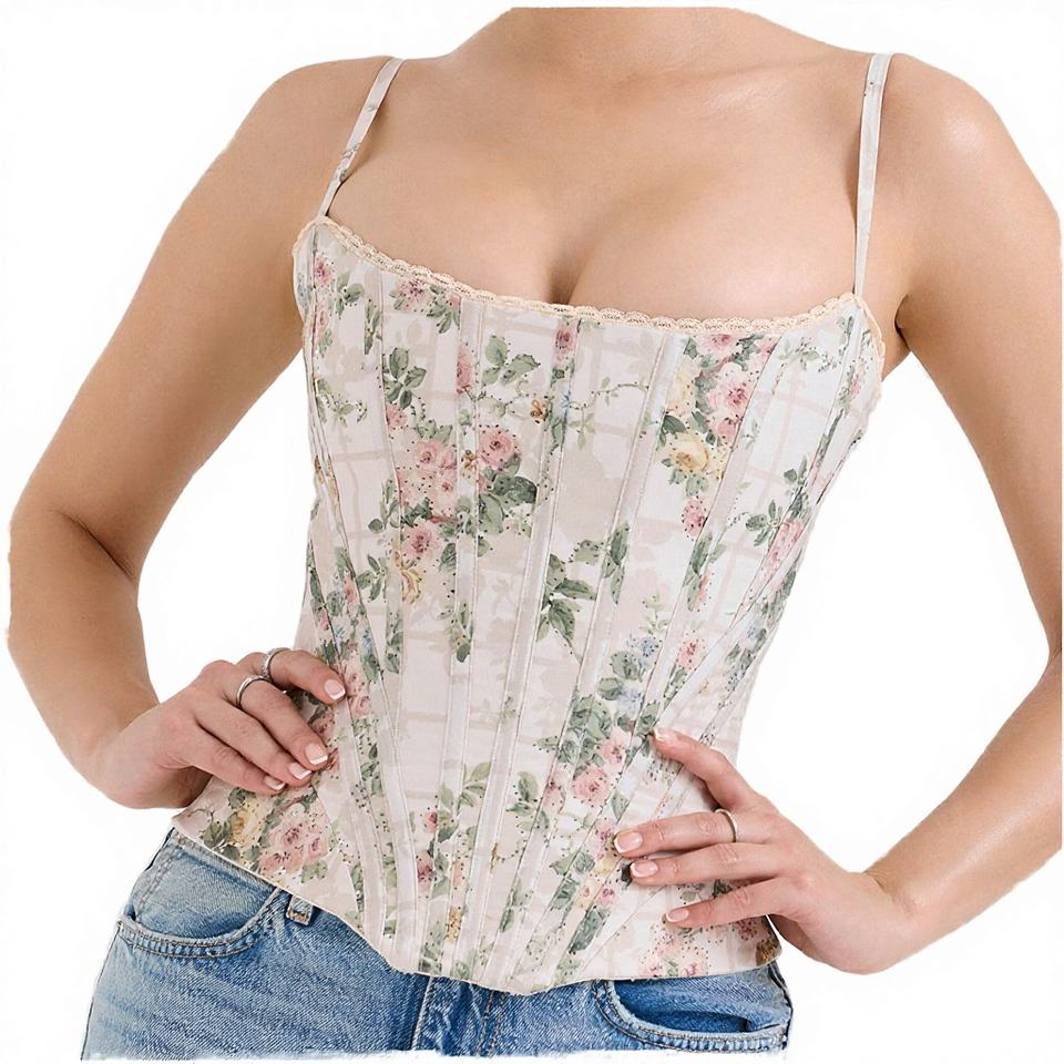 Wholesale Women's Breathable Strapless Short Crop Top Corset with Floral Print-Elegant Femme Tops