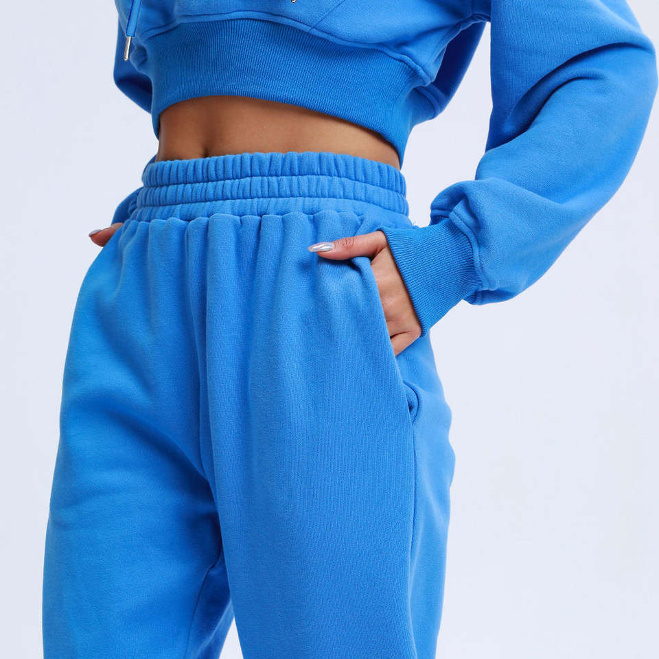 Wholesale Women's Casual Sportswear 100% Cotton Two Piece Set Crop Top Pants Hooded Tracksuits Sweatshirt