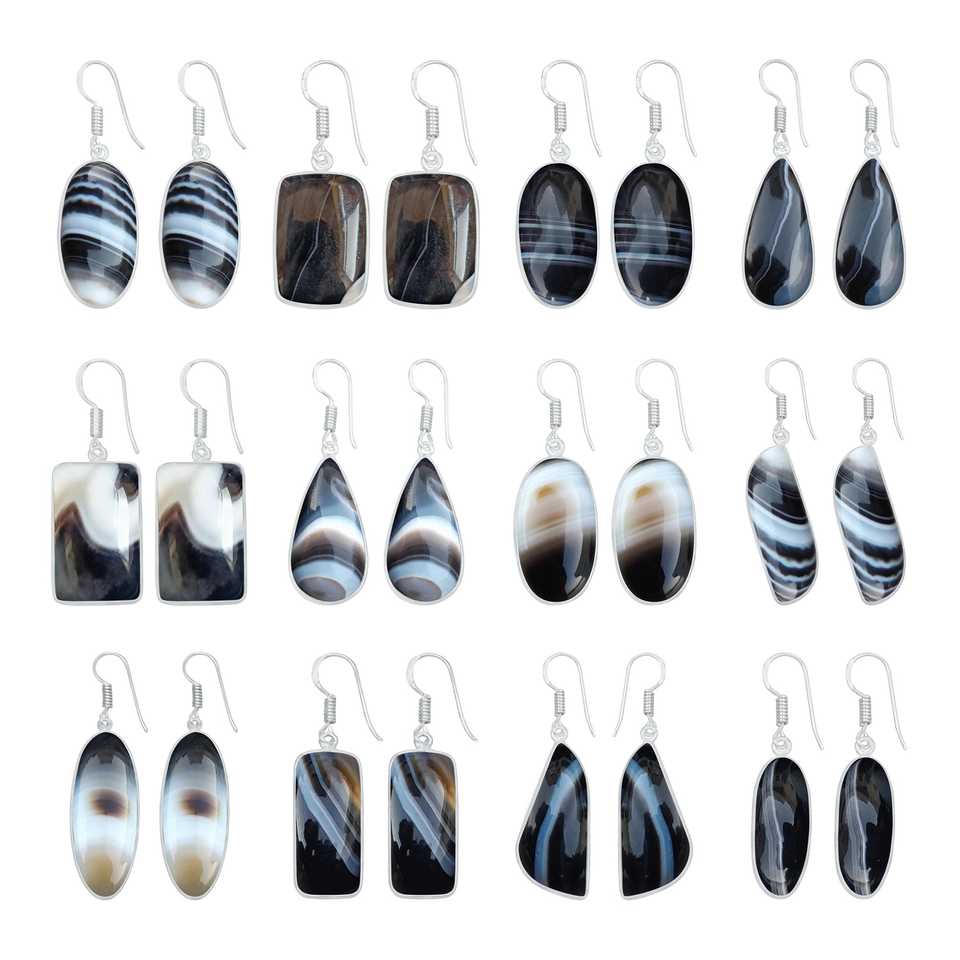 Wholesale Women's Earring botswana agate earring Gemstone Birthstone Christmas Handmade Jewelry Silver plated brass Earring