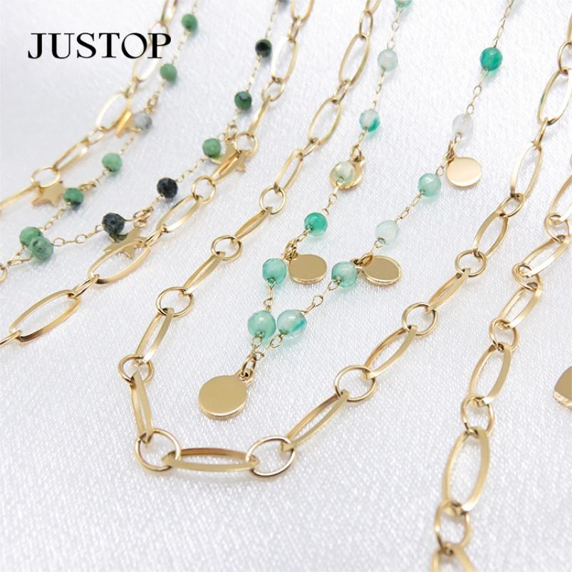 Wholesale Women's Gold Plated Stainless Steel Necklace Personalized Delicate Agate Beads-Natural Stone Heart Star Chain Charms