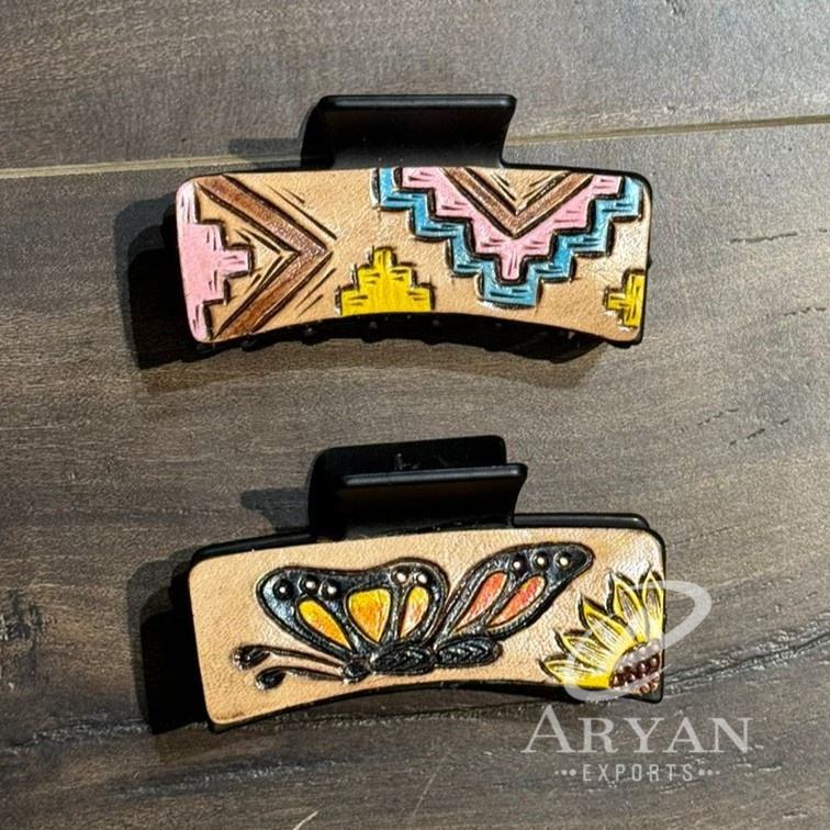 Product name:Hand Tooled Leather Women Hair Claw Clip