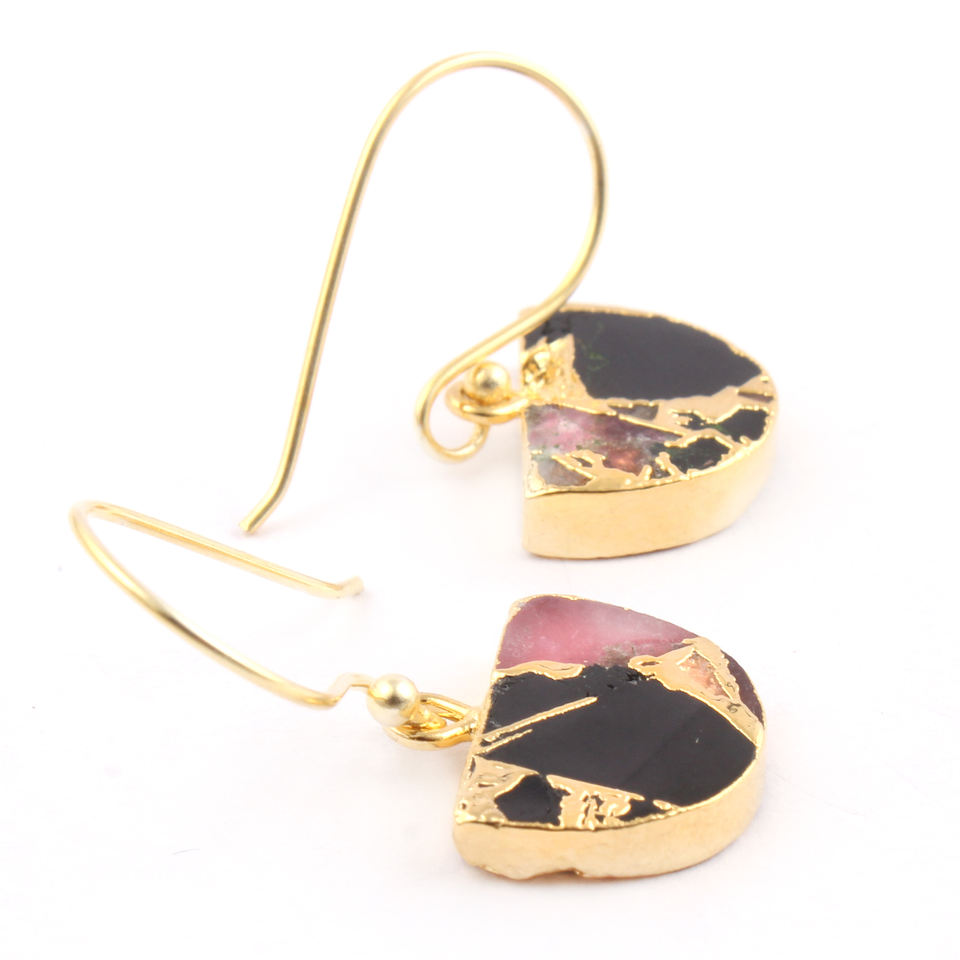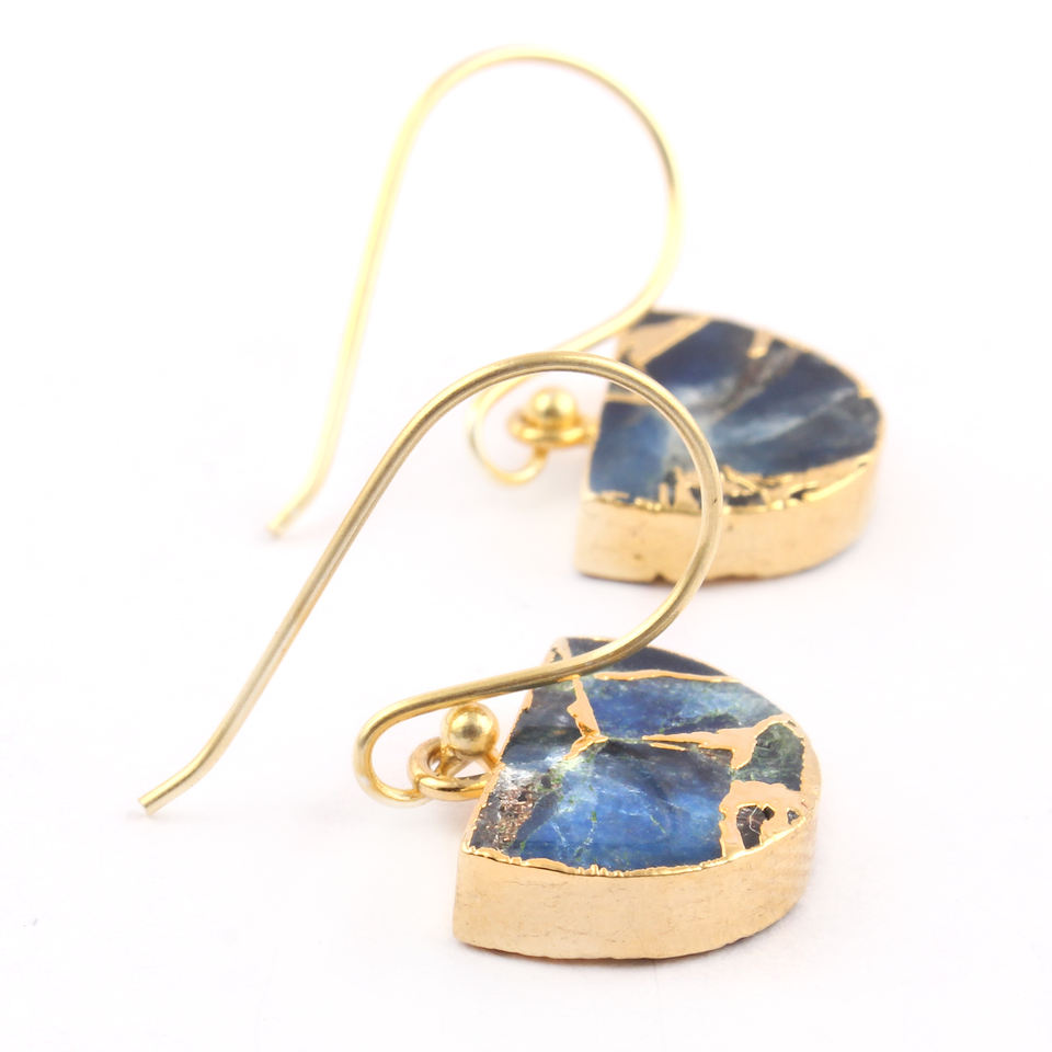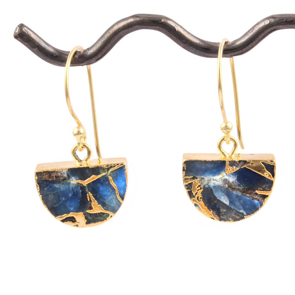 Wholesale Women's Jewelry Mohave Sapphire Copper Turquoise Dangle Earring Brass Gold Electroplated Edged d Shape Drop Earrings