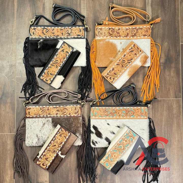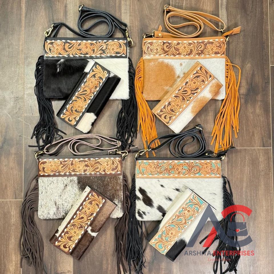 Product name:Hand Tooled Leather Cowhide Fringe Bag with Wallet Set