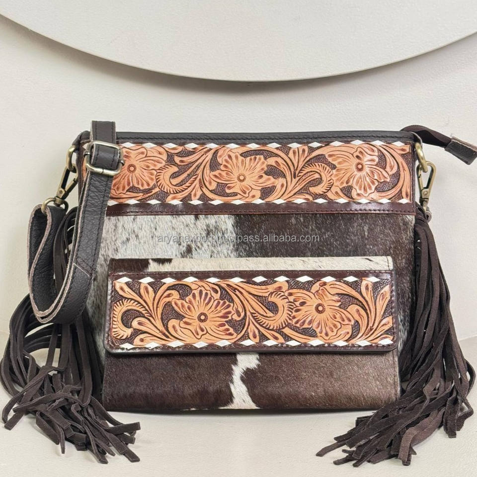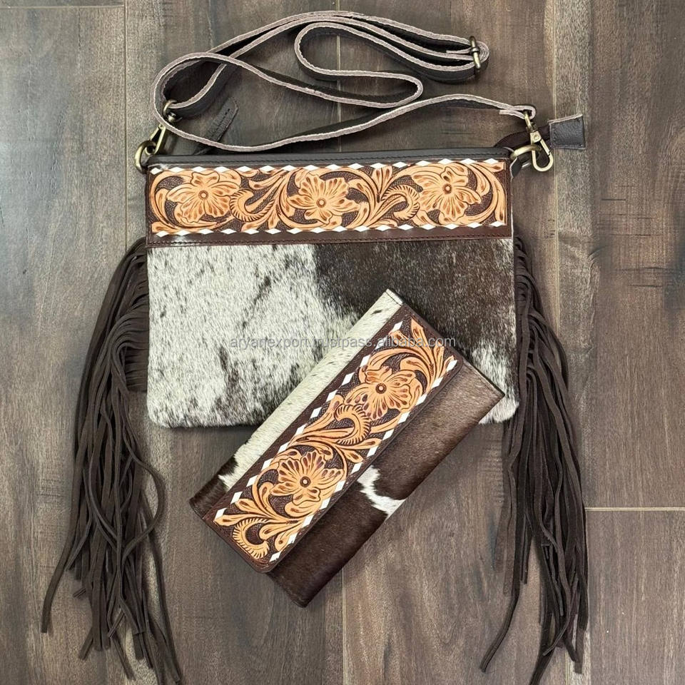 Product name:Hand Tooled Leather Cowhide Fringe Bag with Wallet Set