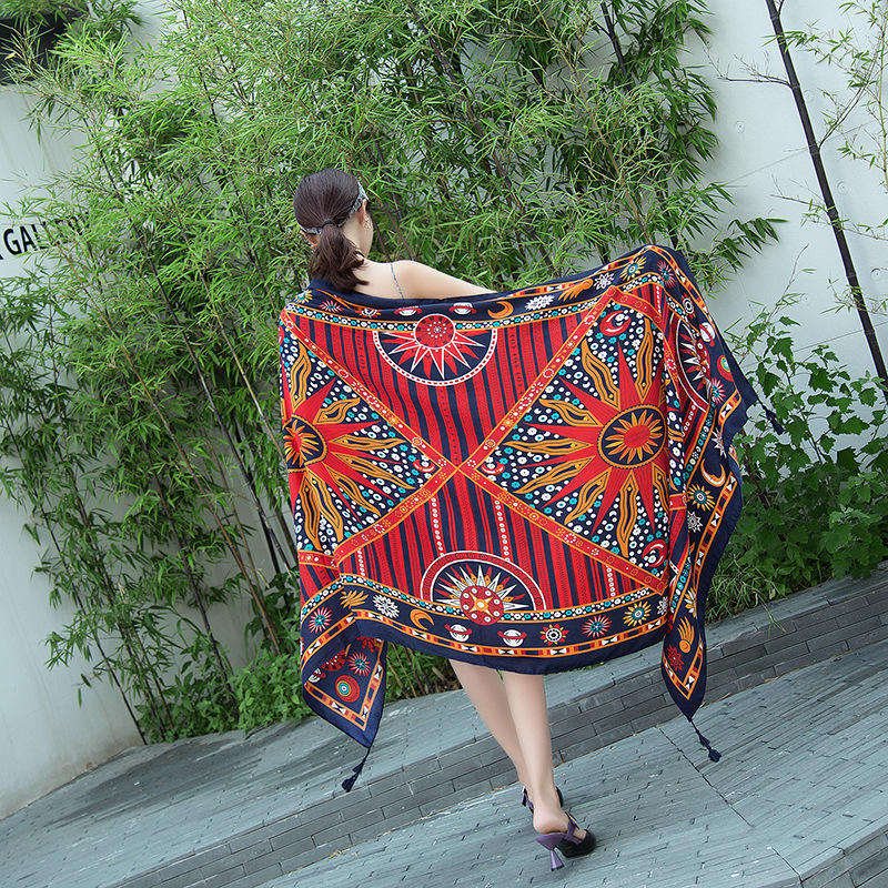 Wholesale Women's Long Summer Sunscreen Versatile Polyester Scarves & Shawls with Color Blocking Pattern Durable Fabric