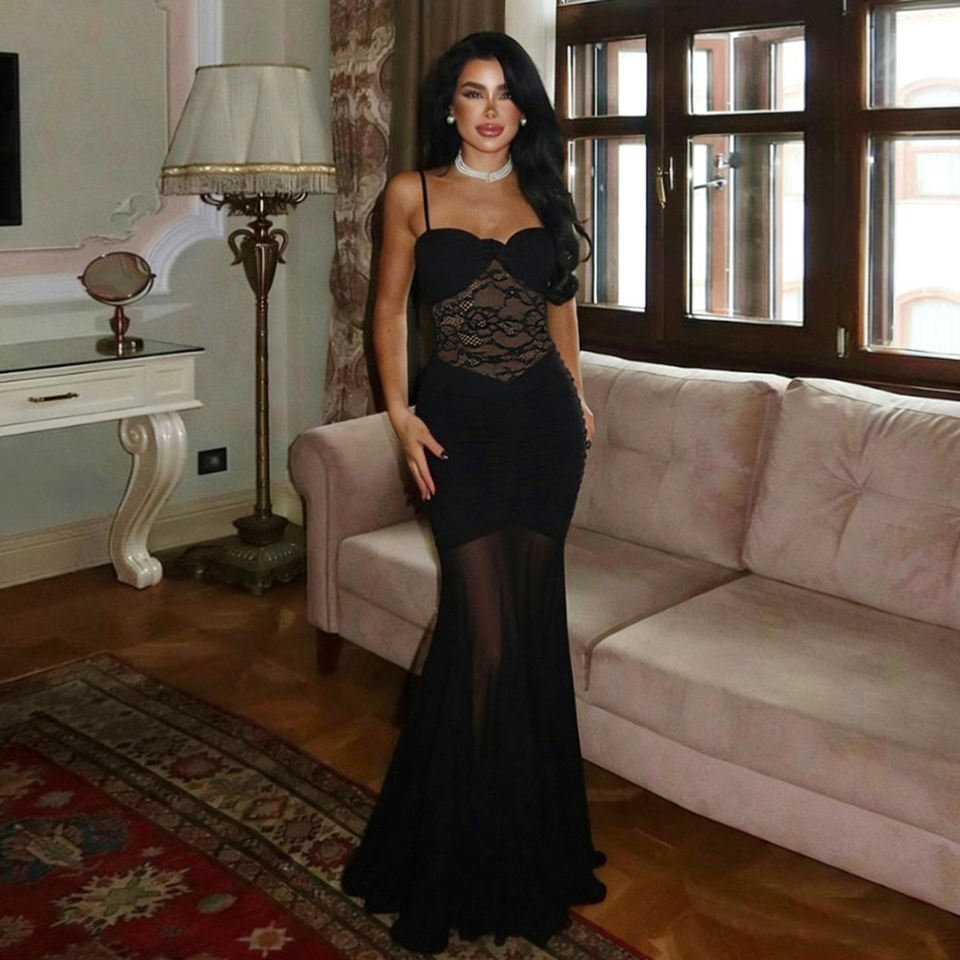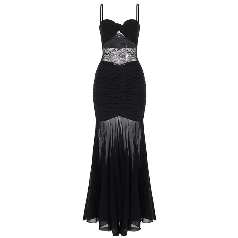 Wholesale Women's New Evening Gown Alluring Sheer Lace Tulle Paneled Strapless Slip Dress