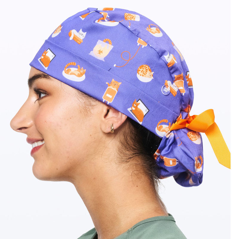 Wholesale Women's Satin Lined Ponytail Scrub Caps Custom Embroidery Print Logo Long Hair Buttons Nurse Ponytail Caps For Womens