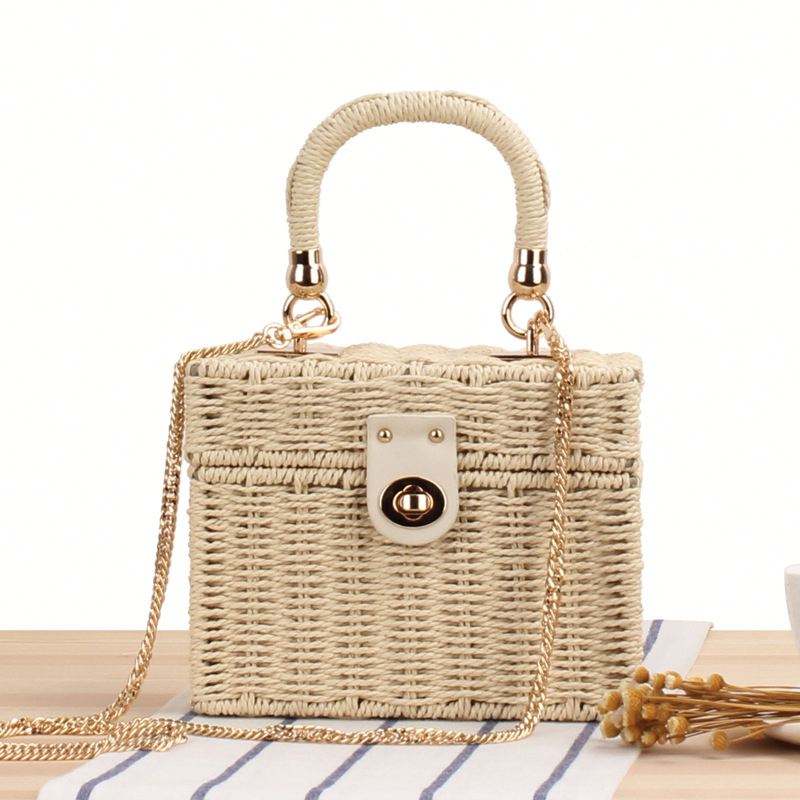 Wholesale Women's Shoulder Handle Woven Bag Small Square Box Paper Straw Beach Bag