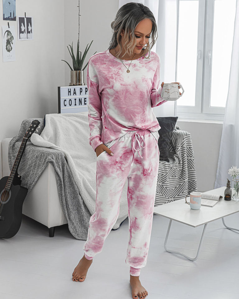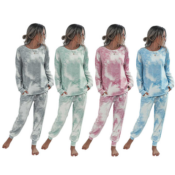 Wholesale Women's Tie-dye Leggings Ladies Pyjamas and Sleepwear Cotton Loungewear Winter Pajama Sets Women