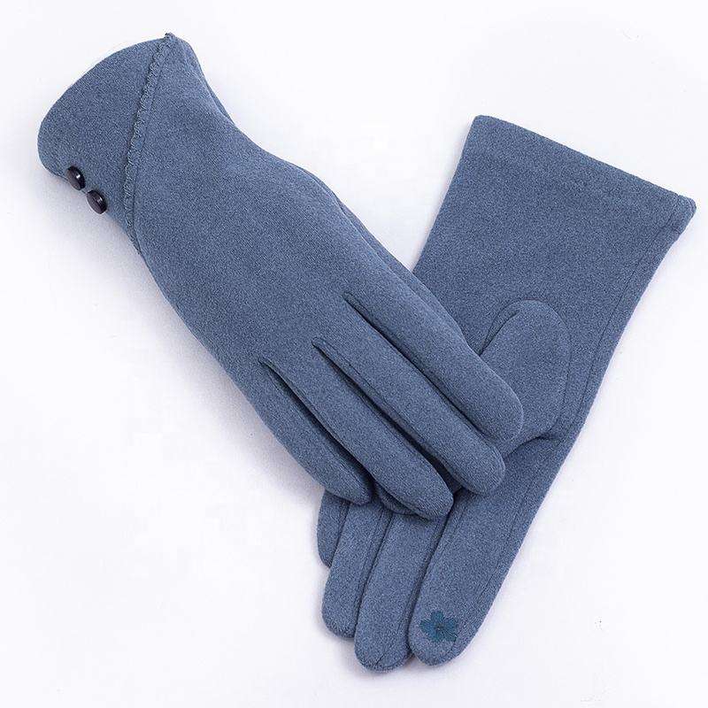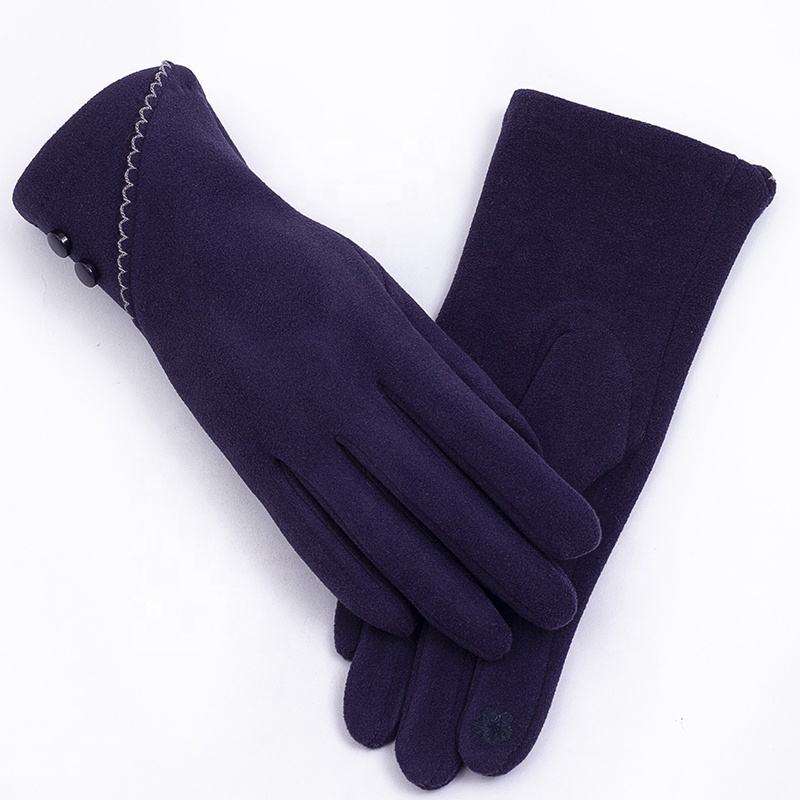 Wholesale Women's Winter Sports Outdoor Nylon Faux Suede Warmth Eco-Friendly for Finger Glove Contrast Color Buttons