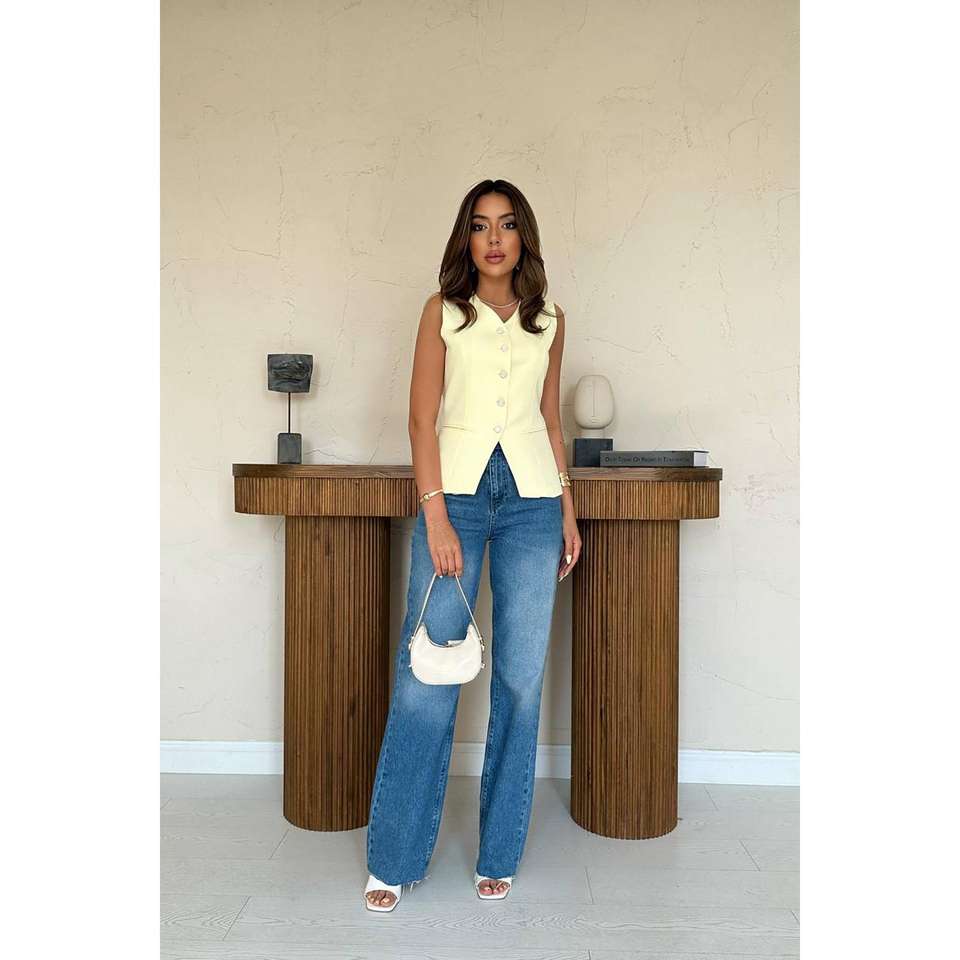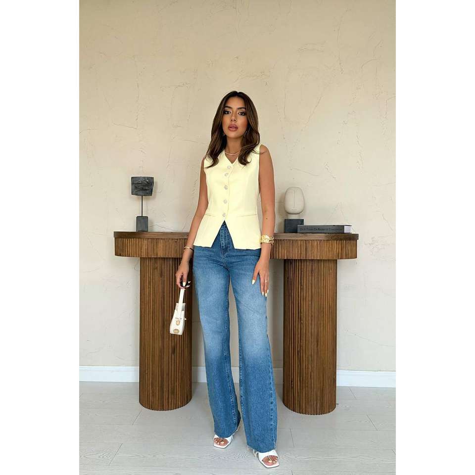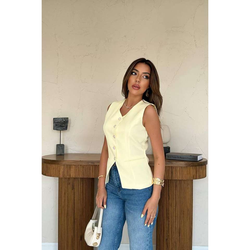 Wholesale Women's Yellow Waist-Fit Buttoned Vest Embroidered Canvas Fabric Knitted Woven Outer Animal Cotton for Suits Waistcoat