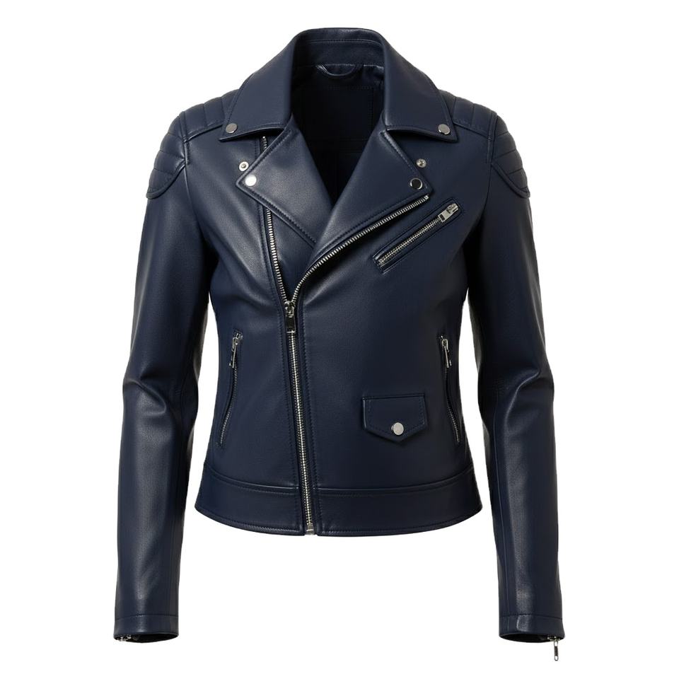 Wholesale Womens Navy Blue Leather Biker Jacket Custom Genuine Motorbike Style Real Leather Ladies Coat Daily Use Bulk Sale
