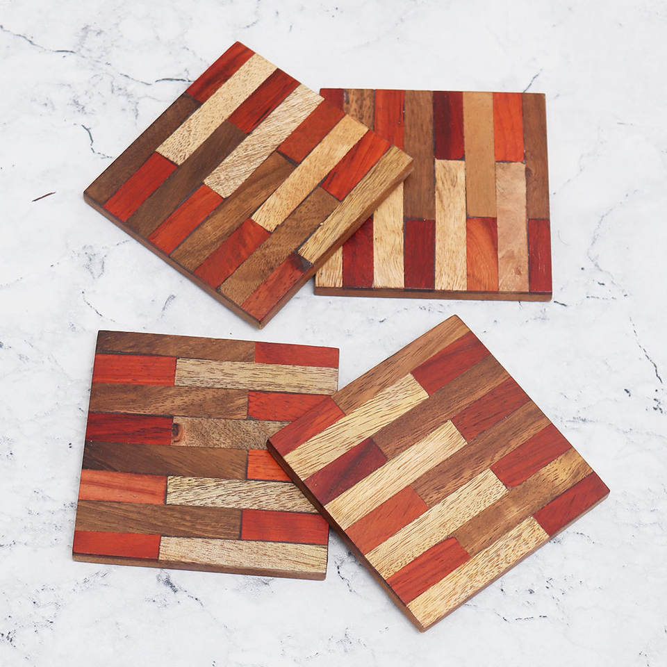Wholesale Wood square Brown Checked Pattern Coasters for Tea Cups Bulk Wooden Table Coasters, Drink Mats for Hot Cold Beverages