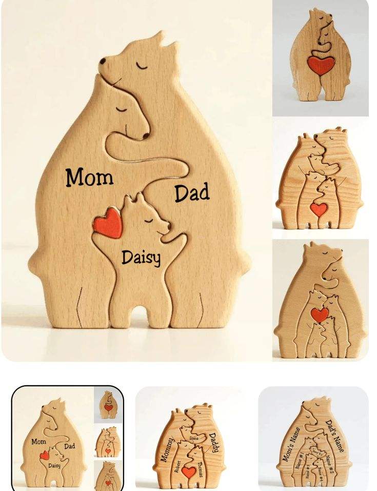 Wholesale Wooden Bear Family Puzzle Home Decor | Personalized Wooden Sculpture | Quality Handmade Work | Factory Price