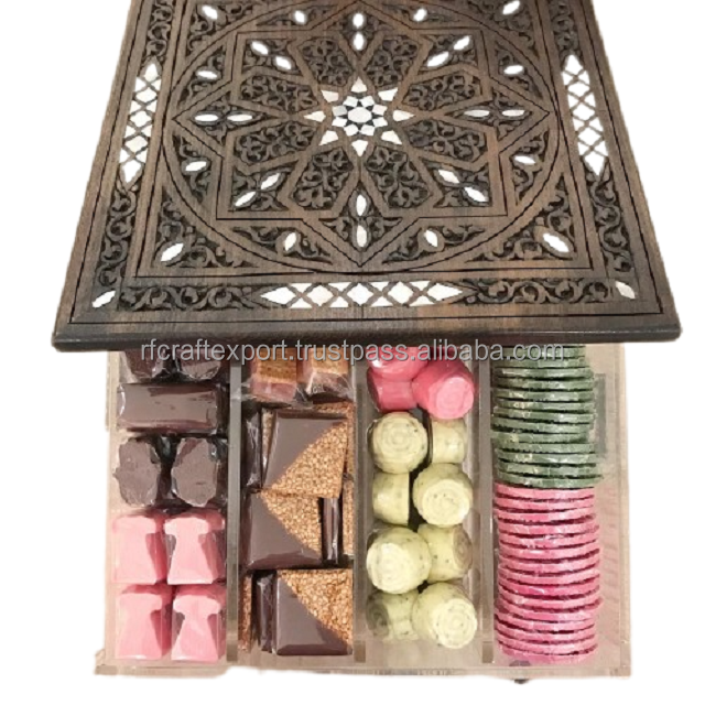 RF Crafts Wholesale Wooden MOP Inlay Acrylic Tray for Dessert Storage Wood Mop Inlay and Acrylic Container Food Safe